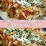Comforting and delicious chicken enchiladas with a creamy sour cream white sauce, perfect for family dinners.